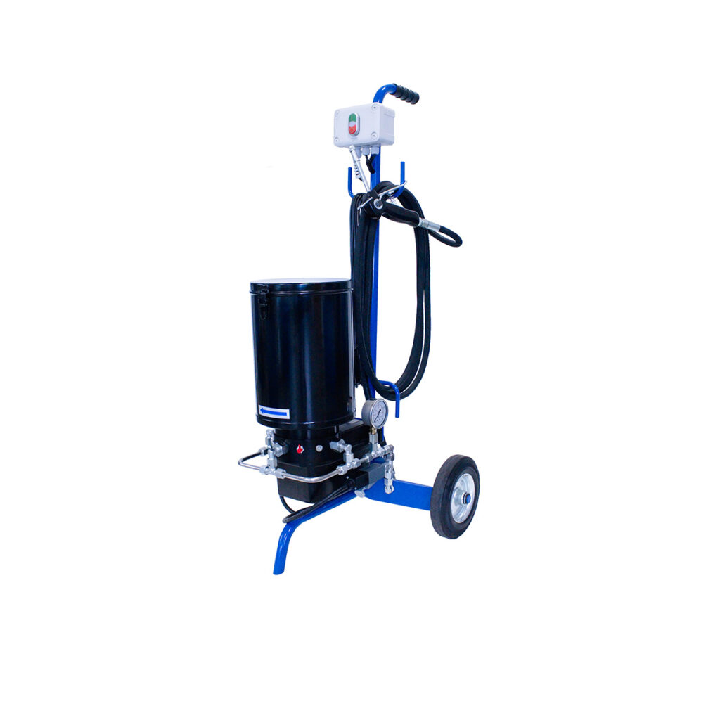 Pojízdný mazací přístroj PMPP je dodáván v provedení s kovovou nádrží o objemu 12 litrů nebo s nádrží z organického skla o objemu 8 litrů. Jmenovité dodávané množství je jednotně stanoveno na 10,5 cm3/min. Základem mazacího přístroje je pístové čerpadlo se třemi pracovními jednotkami spojenými do jednoho vývodu, který je opatřen regulovatelným přepouštěcím ventilem, manometrem, vysokotlakou hadicí a výdejní pistolí s koncovkou. Uvedení do provozu se provádí sepnutím spínače umístěného v elektro-skříni na rámu mazacího přístroje. Elektromotor je dodáván v provedení 230 V AC, jiná napětí jsou možná na vyžádání. Mazací přístroje PMPP představují ideální přístroje pro rychlé a spolehlivé promazávání ložisek, čepů a dalších mazaných míst mobilních strojů a stacionárních strojních aplikací.